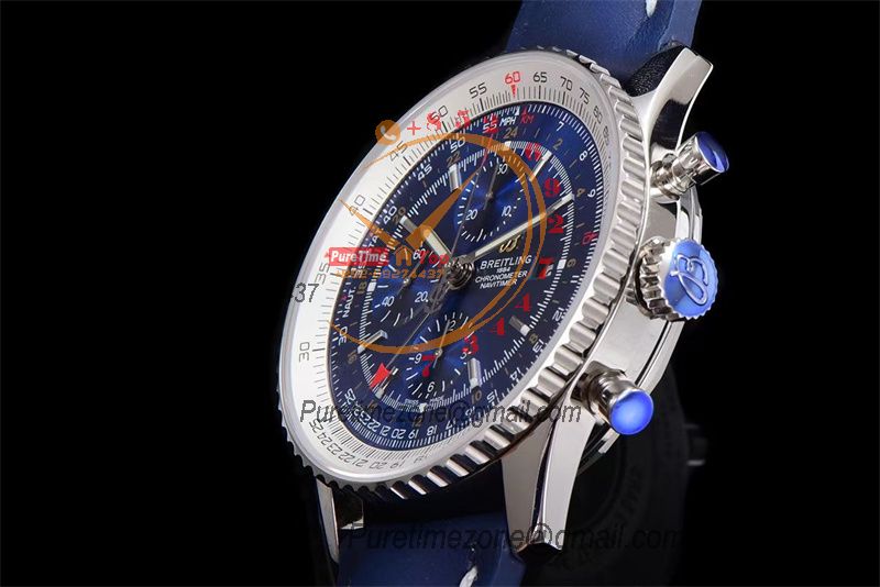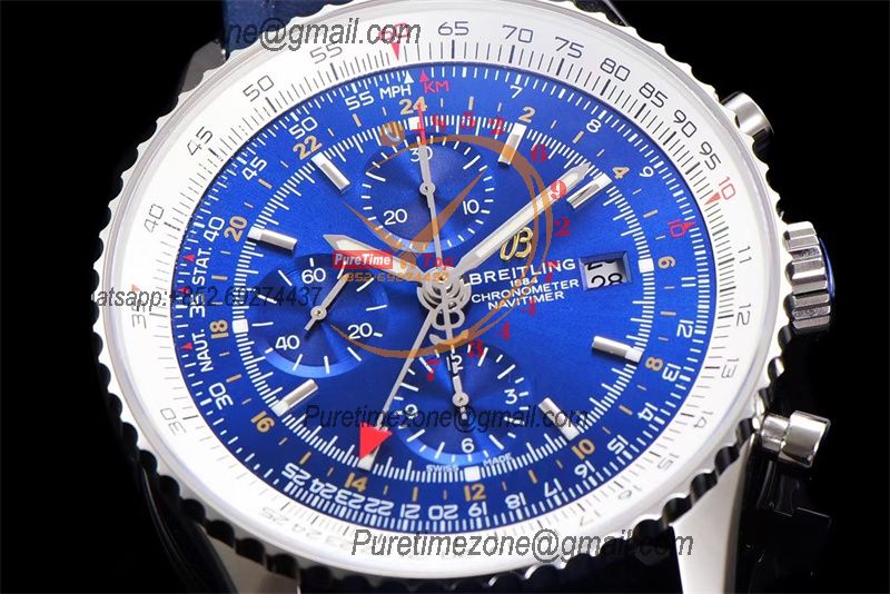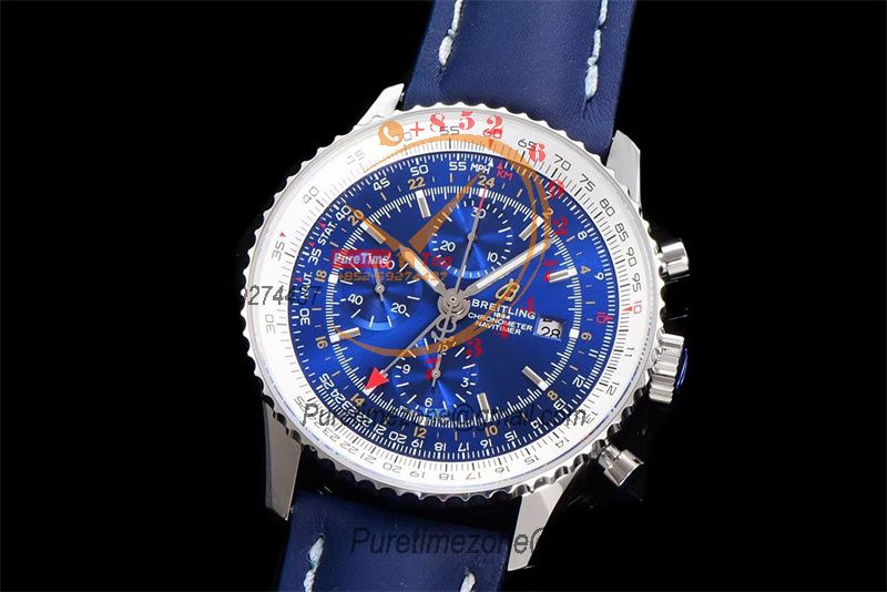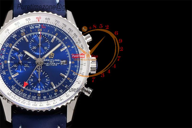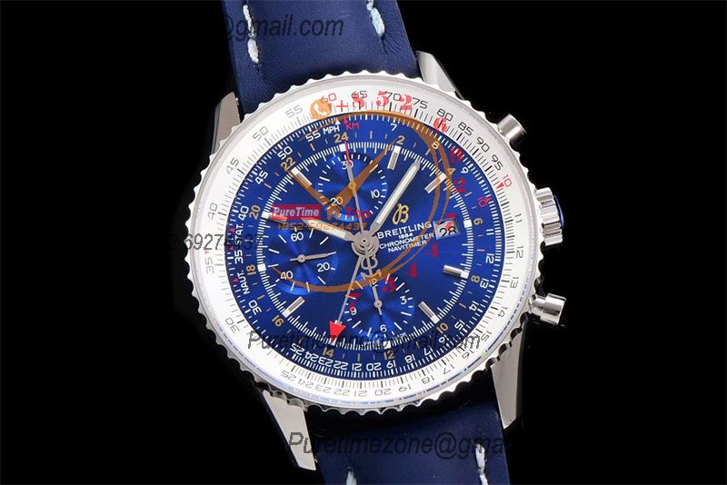 A24322121 Navitimer 1 World GMT A7750 Automatic Chronograph Mens Watch Blue Dial Leather Strap Best Edition