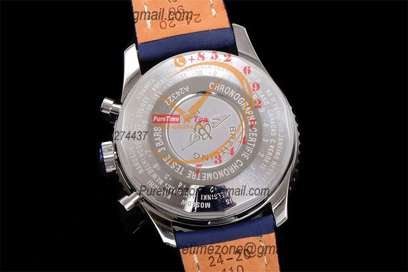 A24322121 Navitimer 1 World GMT A7750 Automatic Chronograph Mens WatchBlue Dial Blue Leather Strap Best Edition
