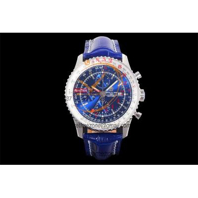 A24322121 Navitimer 1 World GMT A7750 Automatic Chronograph Mens Watch Blue Dial Leather Strap Best Edition