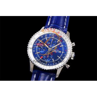 A24322121 Navitimer 1 World GMT A7750 Automatic Chronograph Mens WatchBlue Dial Blue Leather Strap Best Edition