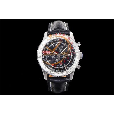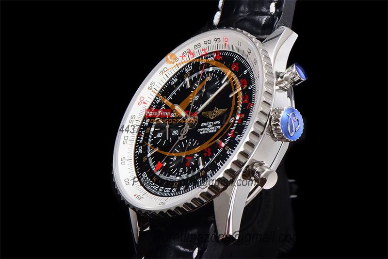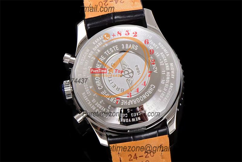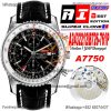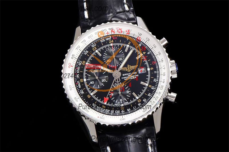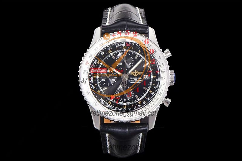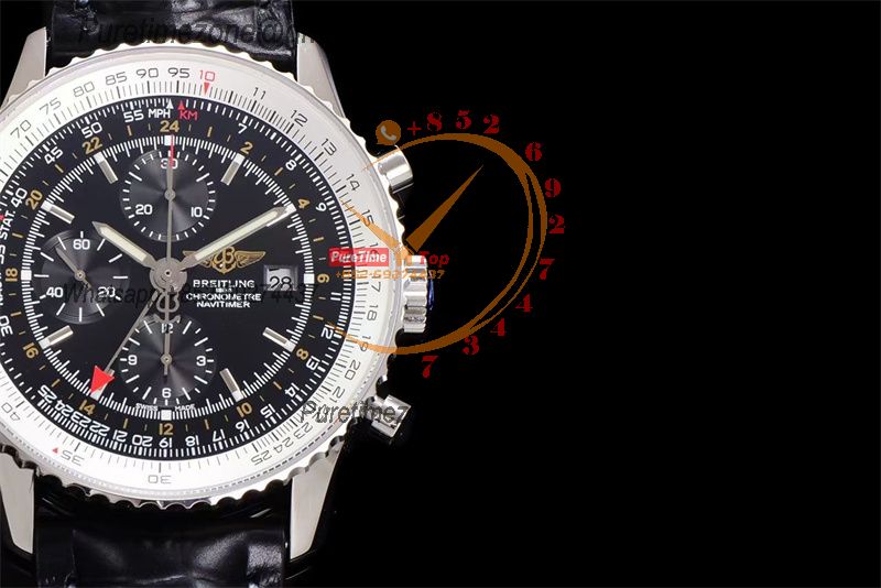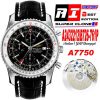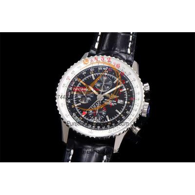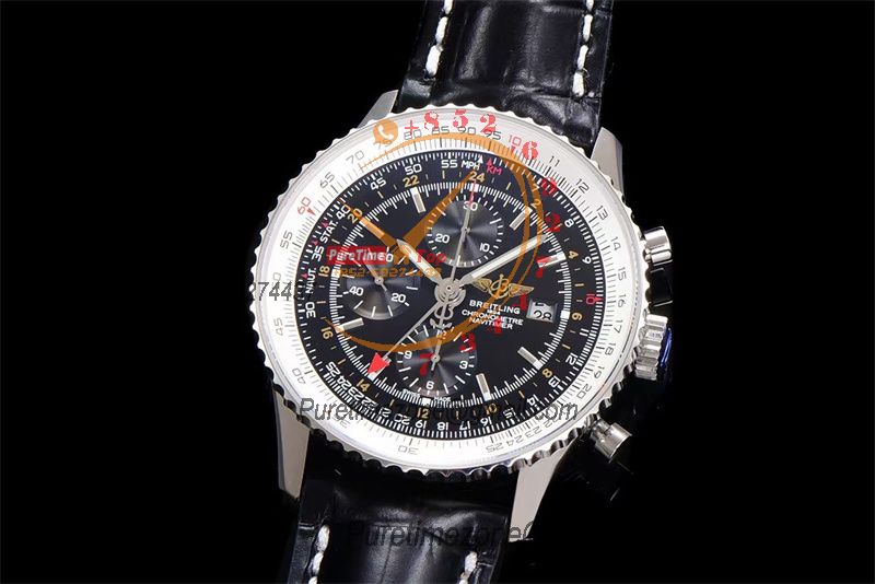A24322121 Navitimer 1 World GMT A7750 Automatic Chronograph Mens Watch Black Dial Leather Strap Best Edition
