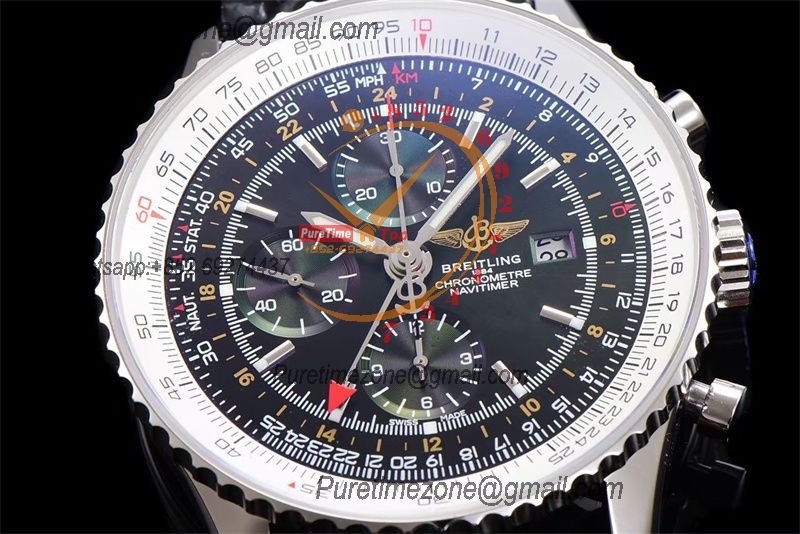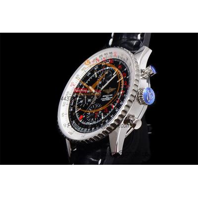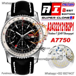 A24322121 Navitimer 1 World GMT A7750 Automatic Chronograph Mens WatchBlack Dial Leather Strap Best Edition