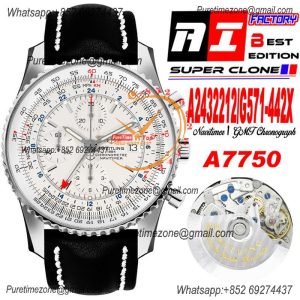 A24322121 Navitimer 1 World GMT A7750 Automatic Chronograph Mens WatchWhite Dial Black Leather Strap Best Edition