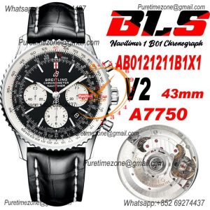 AB0121211B1X1 Navitimer A7750 Automatic Chronograph Mens Watch 43mm Black Dial Leather Strap Best Edition V2