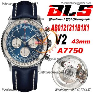 AB0121211B1X1 Navitimer A7750 Automatic Chronograph Mens Watch 43mm Blue Dial Leather Strap Best Edition V2