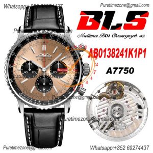 Navitimer B01 AB0138241 A7750 Automatic Chronograph Mens Watch Best Edition BLSF Copper Dial Black Leather Strap
