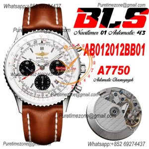 Navitimer 1 AB012012 A7750 Automatic Chronograph Mens Watch SS Best Edition BLSF Silver Dial Brown Leather Strap