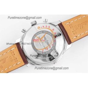 A24322121 Navitimer 1 World GMT A7750 Automatic Chronograph Mens WatchWhite Dial Brown Leather Strap Best Edition