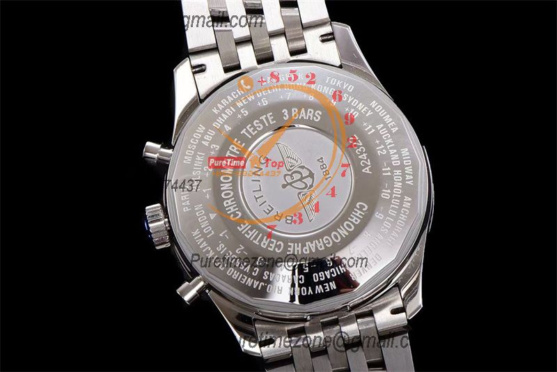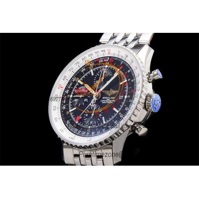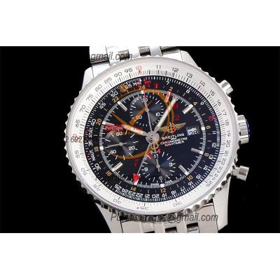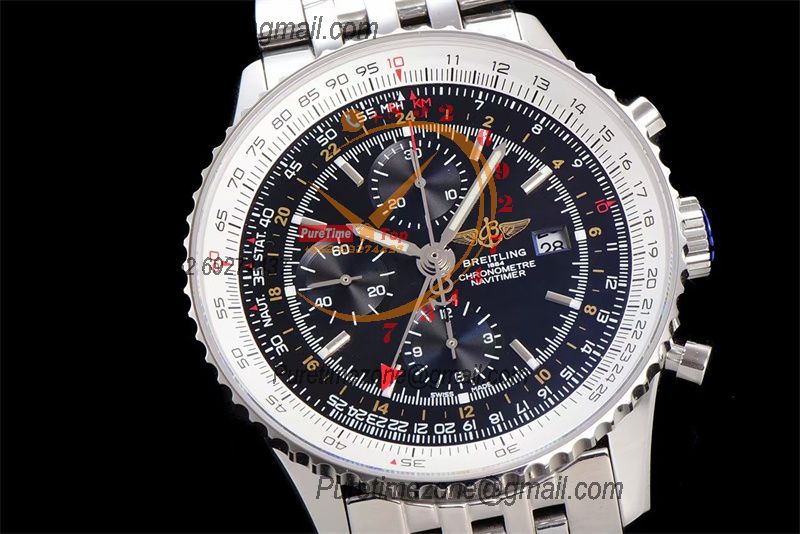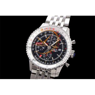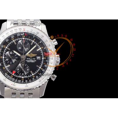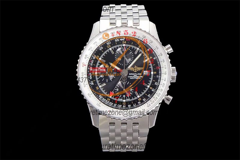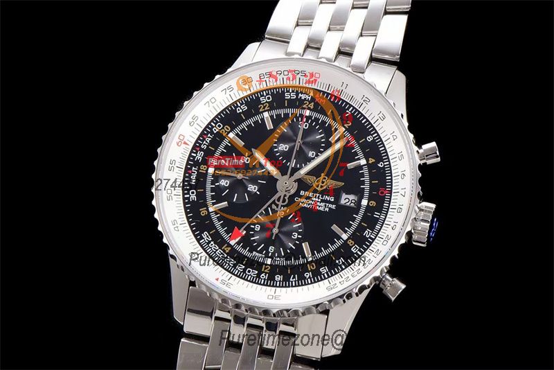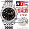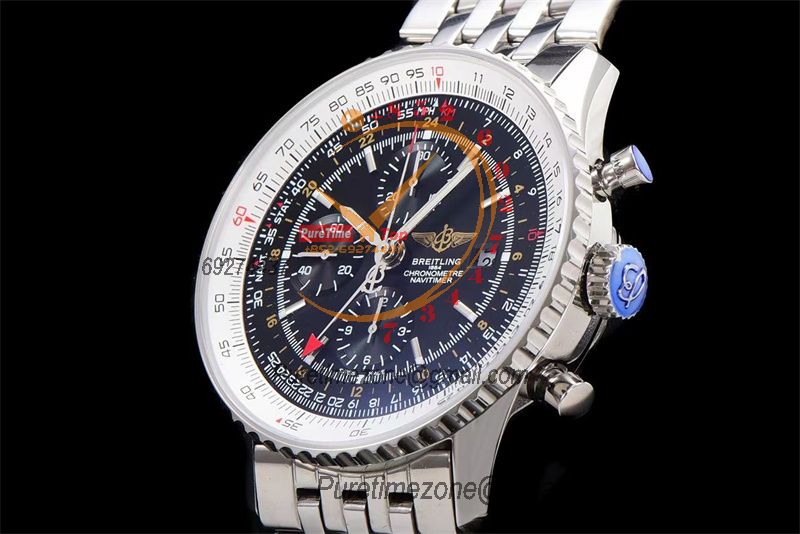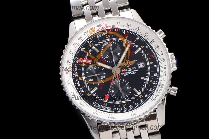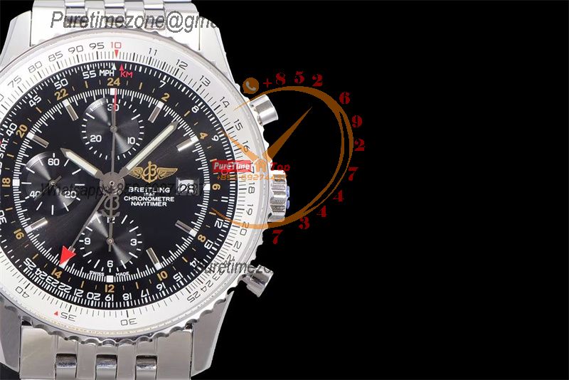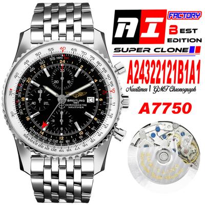 A24322121 Navitimer 1 World GMT A7750 Automatic Chronograph Mens Watch Black Dial SS Bracelet Best Edition
