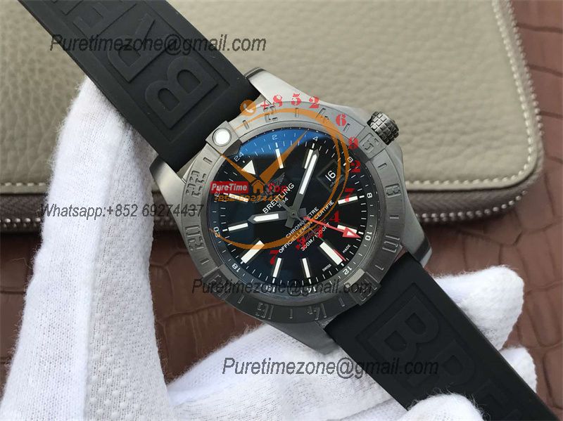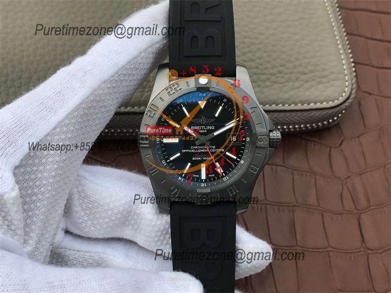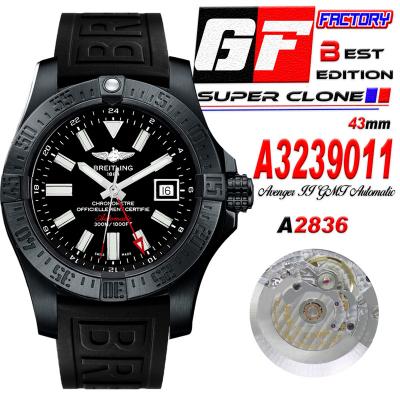 Home Breitling Avenger Aeromarine Avenger II GMT 43mm A3239011 A2836 Automatic Mens Watch Best Edition GF DLC Black Dial Rubber CHS