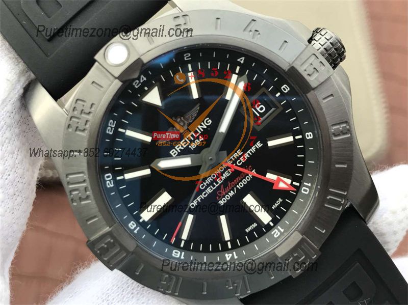 Aeromarine Avenger II GMT 43mm A3239011 A2836 Automatic Mens Watch Best Edition GF DLC Black Dial Rubber CHS