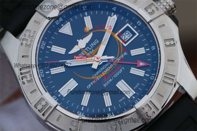 Aeromarine Avenger II GMT 43mm A3239011 A2836 Automatic Mens Watch Best Edition GF SS Blue Dial Rubber CHS $720.00 $480.00