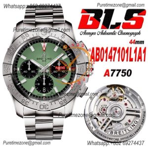 Avenger Chronograph AB0147101L1A1 A7750 Automatic Mens Watch Best Edition BLSF 44 Green Dial SS Bracelet CHS