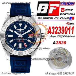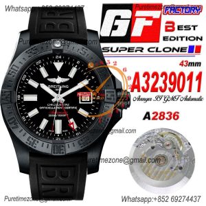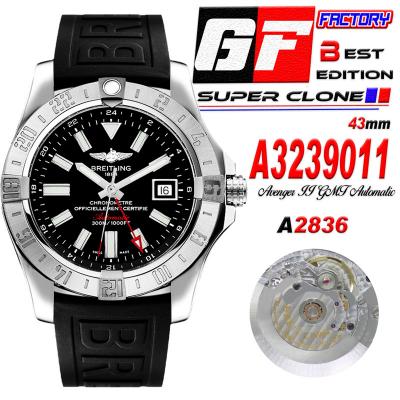 Home Breitling Avenger Aeromarine Avenger II GMT 43mm A3239011 A2836 Automatic Mens Watch Best Edition GF SS Black Dial Rubber CHS