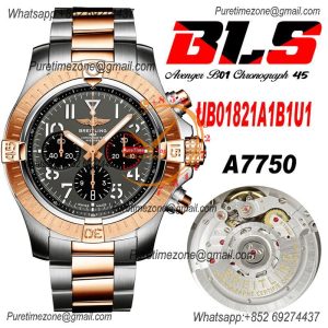 Avenger B01 UB01821 ETA7750 Automatic Chronograph Mens Watch Best Edition BLSF 45mm RG Black Dial SS Bracelet