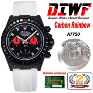 Daytona A7750 Automatic Chronograph Ladies Watch Best Editon DIWF Carbon Black Diamond Red Dial White Rubber
