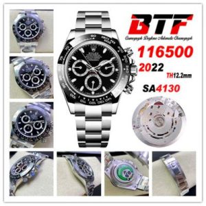 BTF Daytona 116500 SA4130 Automatic Chronograph Mens Watch Ceramics Bezel Black Dial 904L SS Bracelet Best Edition