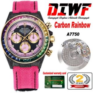 Daytona A7750 Automatic Chronograph Ladies Watch Best Editon DIWF Carbon Rainbow Diamond Black Dial Pink Nylon