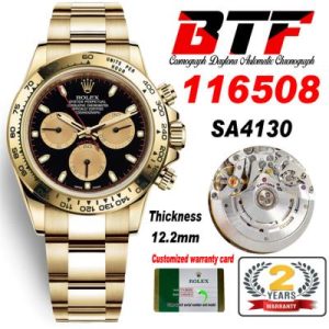 Daytona 116508 SA4130 Automatic Chronograph Mens Watch Best Edition BTF YG Black Gold Dial 904L SS Bracelet CHS