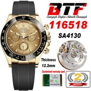 Daytona 116515 SA4130 Automatic Chronograph Mens Watch Best Edition BTF YG Black Dial Oysterflex Rubber CHS