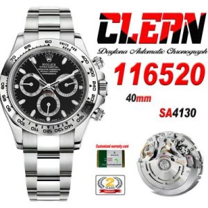 Daytona 116520 SA4130 Automatic Chronograph Mens Watch Best Edition V3 Black Dial 904L Steel Bracelet CHS