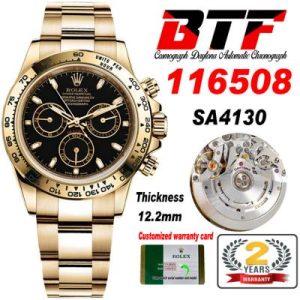 Daytona 116508 SA4130 Automatic Chronograph Mens Watch Best Edition BTF YG Black Dial 904L SS Bracelet CHS