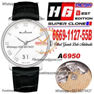 Villeret Grande Date 6669-1127-55B A6950 Automatic Mens Watch Best Edition HGF 40mm SS White Dial Leahter CHS