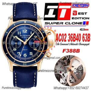 Air Command AC02-36B40-63B F388B Automatic Chronograph Mens Watch Best Edition ITF 42.5 RG Blue Dial Leather Strap CHS $780.00 $650.00