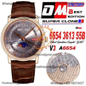 Villeret Complicated Function A6554 Automatic Mens Watch Moon Phase Best Edition OMF 40 RG Gray Dial Leather CHS