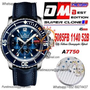 Fifty Fathoms 5058F A7750 Automatic Chronograph Mens Watch Best Edition OMF 45 SS Blue Dial Nylon Strap CHS