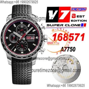 Mille Miglia 168571 SS V7F 1:1 Best Edition Black Dial on Black Rubber Strap A7750 Automatic Chronograph Mens Watch