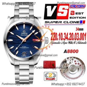 Be the first to review “Aqua Terra 150M 34mm A8800 Autoamtic Womens Watches VSF Best Ediiton Blue Dial SS Bracelet Ladies” Cancel reply