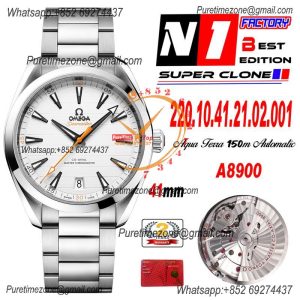 Aqua Terra 150M Master Chronometers A8900 Automatic Mens Watch Best Edition N1F 41 Teak Silver Dial SS Bracelet CHS