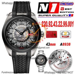 Aqua Terra 150M Worldtimer A8938 Automatic Mens Watch Best Edition N1F V2 43mm Gray Dial on SS Bracelet CHS
