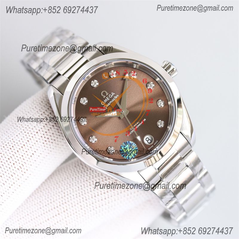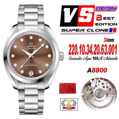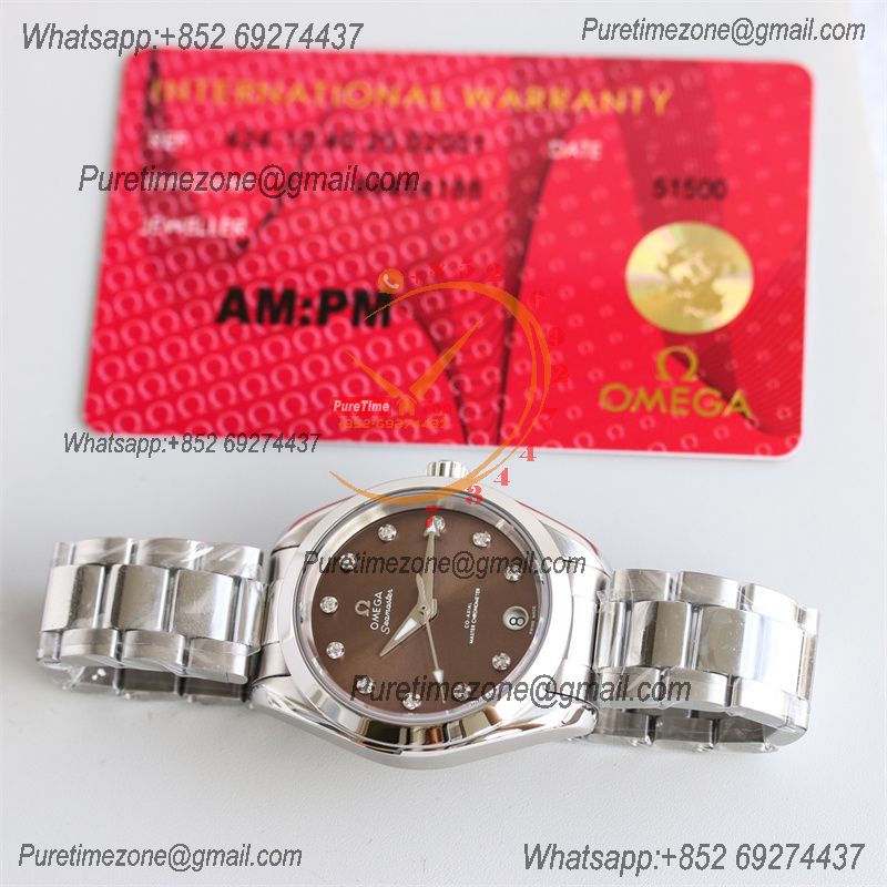 Home OMG Aqua Terra 150M 34mm A8800 Autoamtic Womens Watches VSF Best Ediiton Brown Dial SS Bracelet Ladies