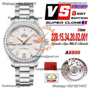 Aqua Terra 150M 34mm A8800 Autoamtic Womens Watches VSF Best Ediiton Diamonds Bezel Silver Dial SS Bracelet Ladies $600.00 $400.00