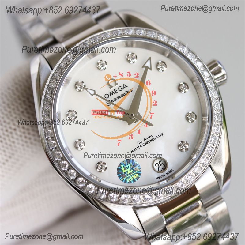 Home OMG Aqua Terra 150M 34mm A8800 Autoamtic Womens Watches VSF Best Ediiton Diamonds Bezel MOP Dial SS Bracelet Ladies