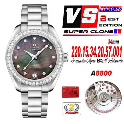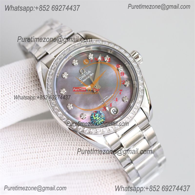 Home OMG Aqua Terra 150M 34mm A8800 Autoamtic Womens Watches VSF Best Ediiton Diamonds Bezel MOP Dial SS Bracelet Ladies