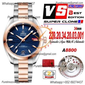 Aqua Terra 150M 34mm A8800 Autoamtic Womens Watches VSF Best Ediiton RG Blue Dial SS Bracelet Ladies $600.00 $400.00