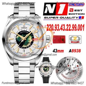 Aqua Terra 150M Worldtimer A8938 Automatic Mens Watch Best Edition N1F V2 43mm White Dial on SS Bracelet CHS