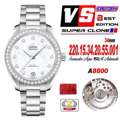Home OMG Aqua Terra 150M 34mm A8800 Autoamtic Womens Watches VSF Best Ediiton Diamonds Bezel MOP Dial SS Bracelet Ladies