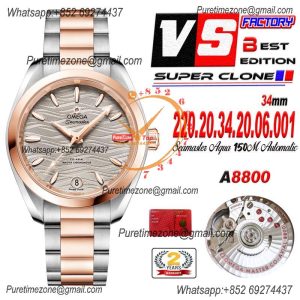 Aqua Terra 150M 34mm A8800 Autoamtic Womens Watches VSF Best Ediiton RG Gray Dial SS Bracelet Ladies $600.00 $400.00