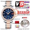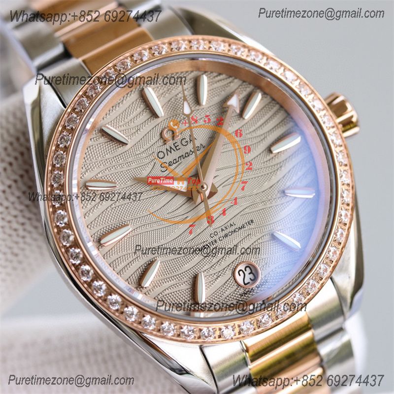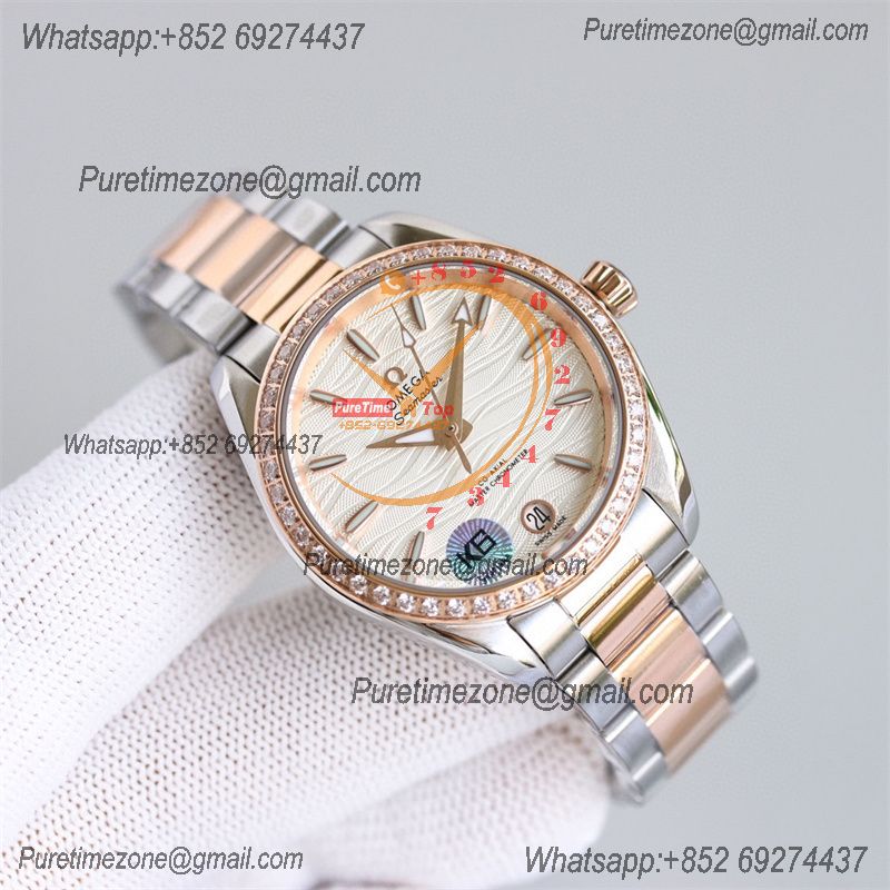 Aqua Terra 150M 34mm A8800 Autoamtic Womens Watches VSF Best Ediiton RG Diamonds Bezel Blue Dial SS Bracelet Ladies