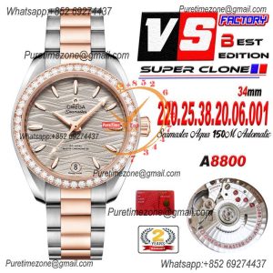 Aqua Terra 150M 34mm A8800 Autoamtic Womens Watches VSF Best Ediiton RG Diamonds Bezel Gray Dial SS Bracelet Ladies $615.00 $410.00