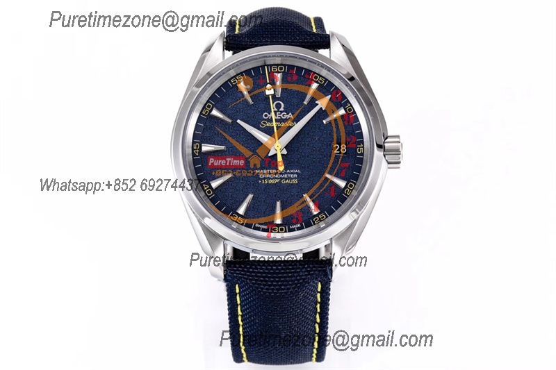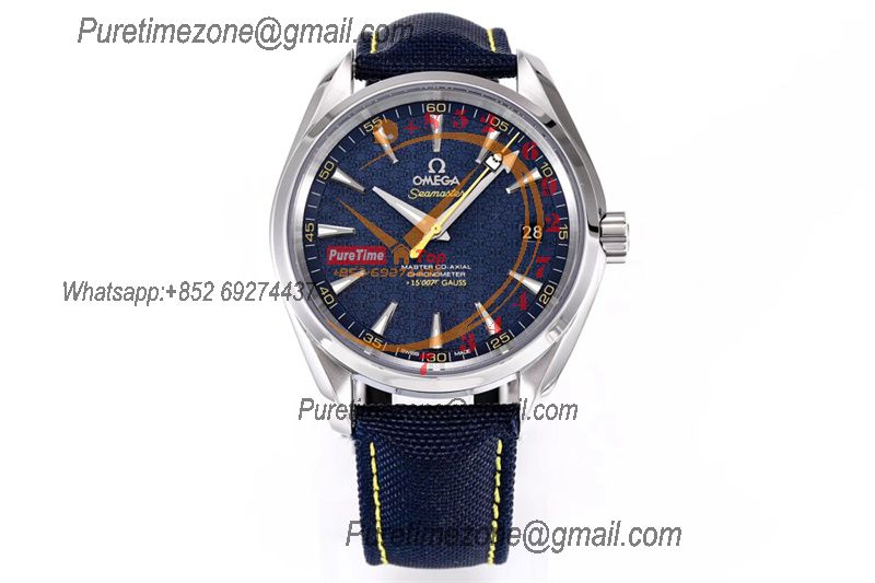 Aqua Terra 150M Worldtimer A8938 Automatic Mens Watch Best Edition N1F V2 43mm Blue Dial on SS Bracelet CHS