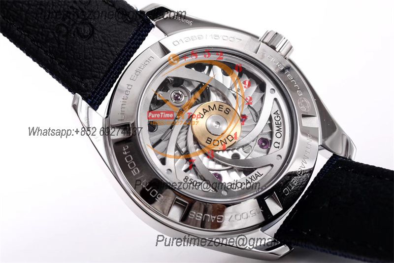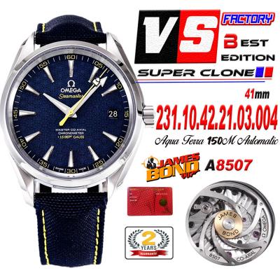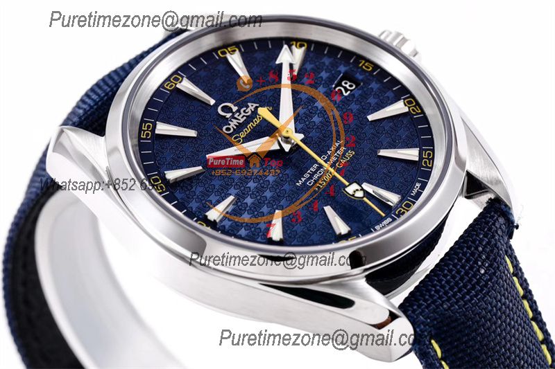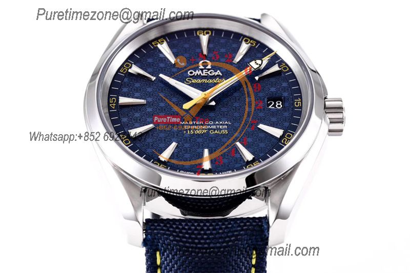 Aqua Terra 150M A8500 Automatic Mens Watch James Bond Best Edition VSF Blue Textured Dial Nylon Strap CHS