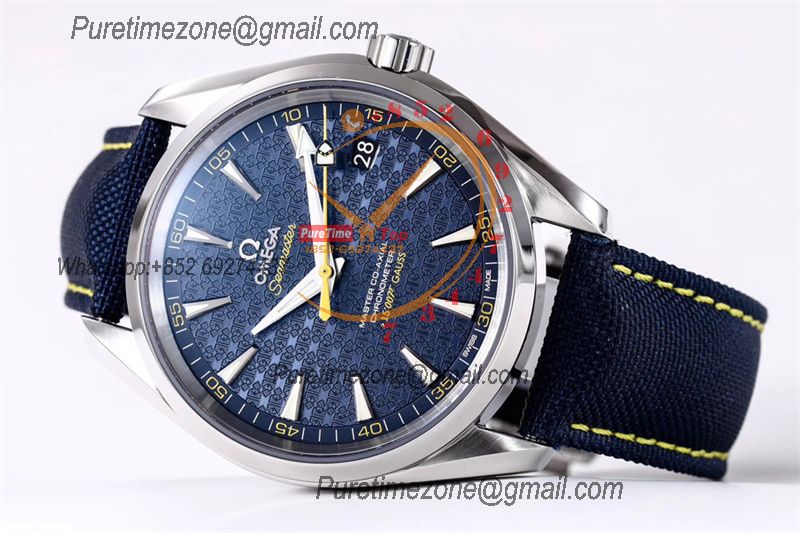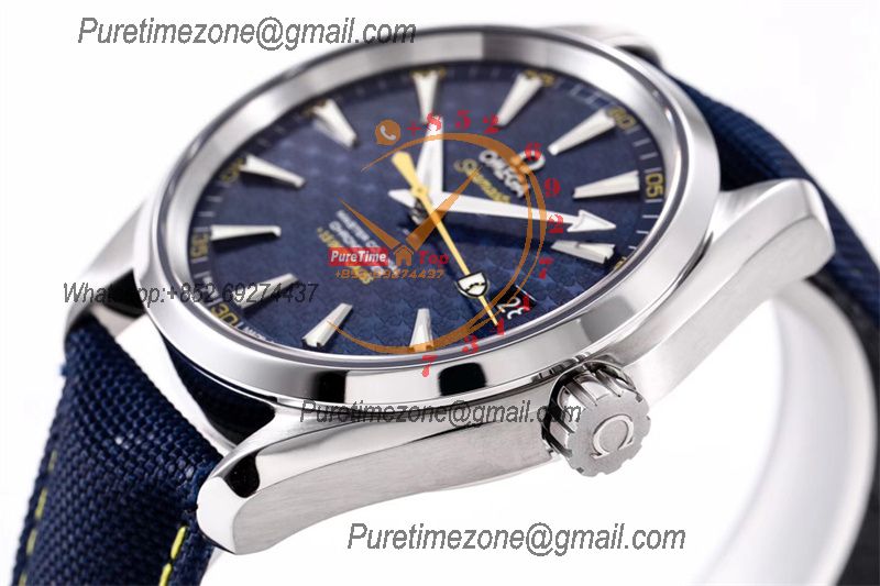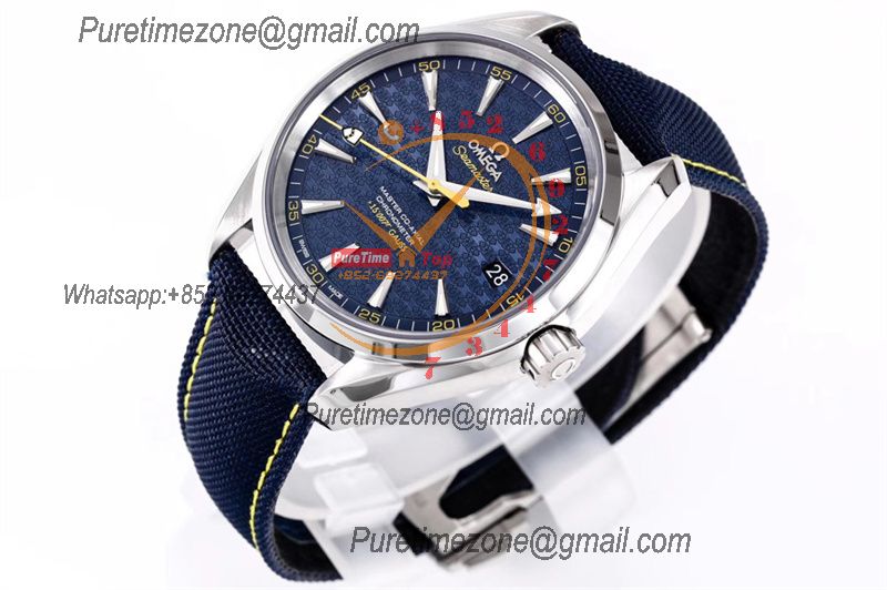 Home OMG Aqua Terra 150M A8500 Automatic Mens Watch James Bond Best Edition VSF Blue Textured Dial Nylon Strap CHS