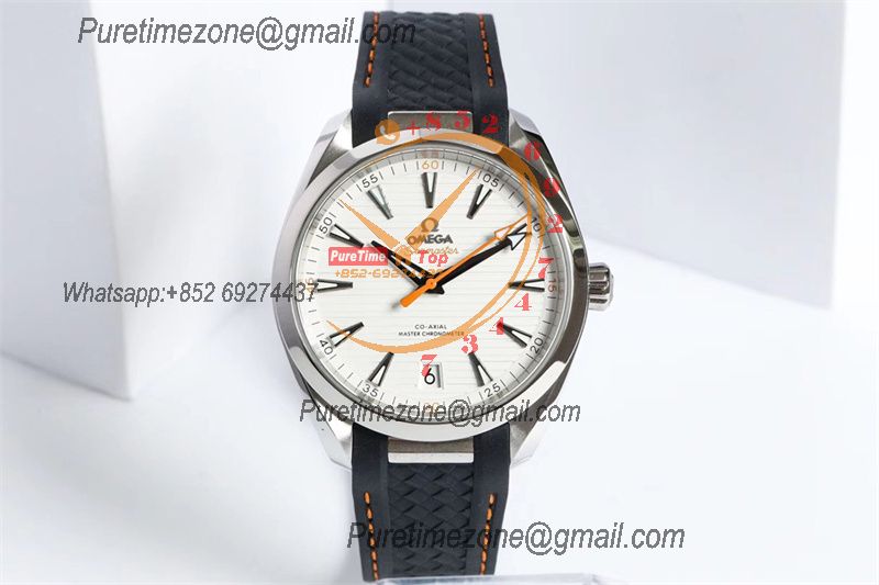 Home OMG Aqua Terra 150M A8900 Automatic Mens Watch Best Edition VSF White Textured Dial Rubber CHS 220.12.41.21.02.002