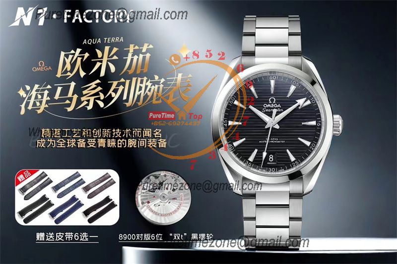 Home OMG Aqua Terra 150M Master Chronometers A8900 Automatic Mens Watch Best Edition N1F 41 Teak Black Dial SS Bracelet CHS