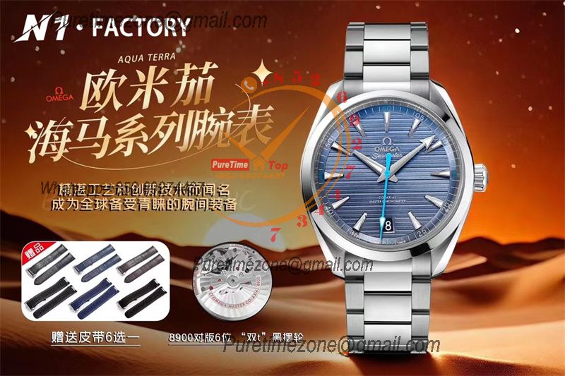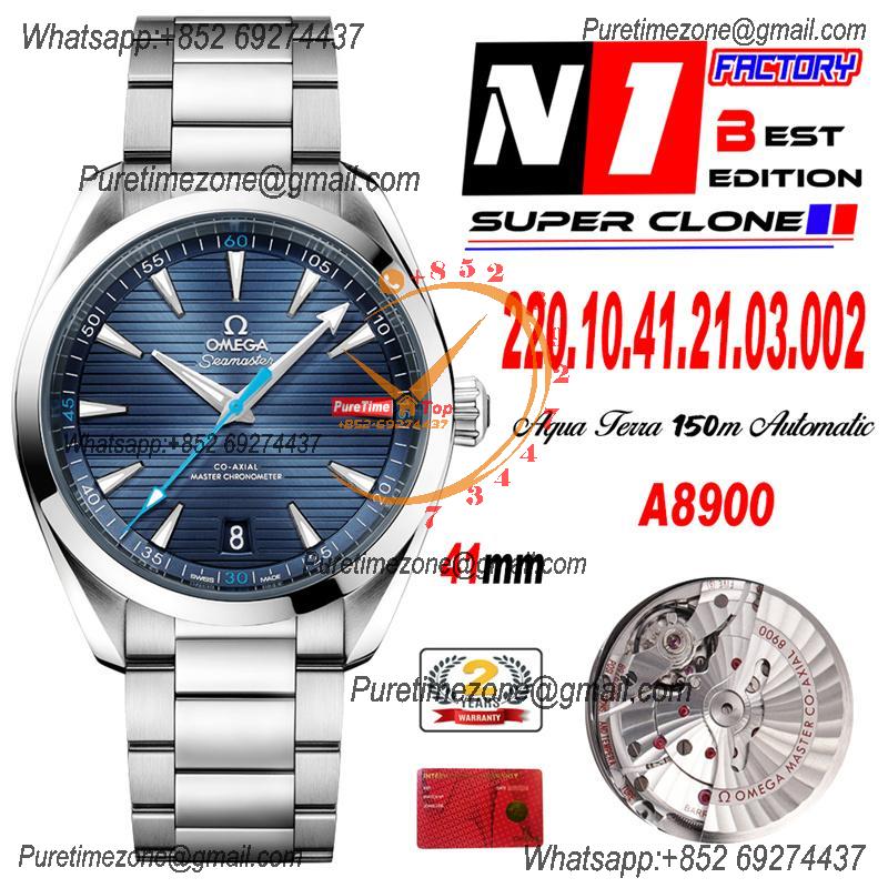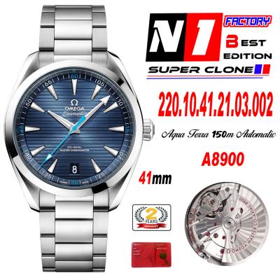 Home OMG Aqua Terra 150M Master Chronometers A8900 Automatic Mens Watch Best Edition N1F 41 Teak Blue Dial SS Bracelet CHS